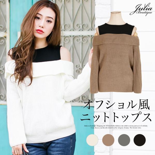 ニット レディース 肩出し 肩あき 長袖 秋冬 冬 オフショル オフショルダー ニットトップス 肩開き ハイネック レイヤード
