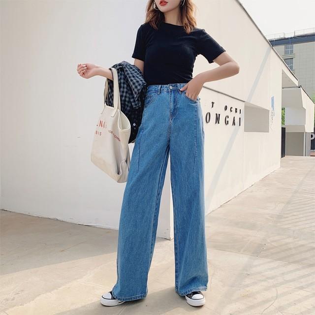 Qoo10 デニムワイドパンツ 大人のトレンドコーデ レディース服