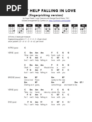 Can T Help Falling In Love Fingerpicking Ukulele Chord Chart Pdf