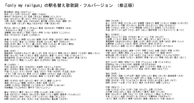 Only My Railgun の駅名替え歌歌詞 フルバージョン 修正版