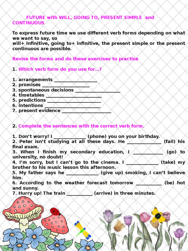 Future Will Be Going To Present Continuous And Present Simple With
